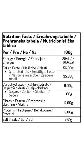 Kann Spuren von Soja und Sojaerzeugnissen, Milch (und Laktose), Schalenfrüchten (Mandeln, Haselnüsse, Walnüsse, Cashewnüsse, amerikanische Nüsse, Paranüsse, Pistazien, Macadamianüsse) und deren Erzeugnisse sowie Sesam und dessen Erzeugnisse enthalten.