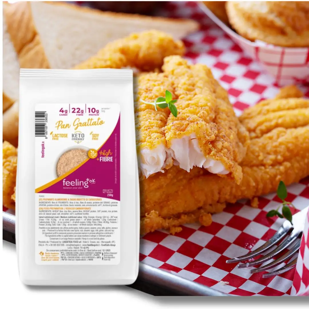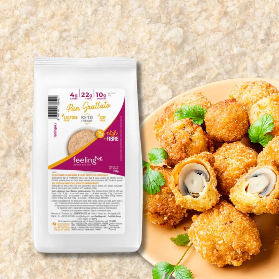 FeelingOK low-carb Semmelbrösel sind eine ausgezeichnete Wahl für alle, die knusprige Gerichte ohne schlechtes Gewissen genießen möchten. Mit 90 % weniger Kohlenhydraten im Vergleich zu normalen weißen Semmelbröseln sind sie eine großartige Alternative zum Panieren von Fleisch, Gemüse, Fisch und mehr. Genießen Sie ein klassisches Wiener Schnitzel oder knusprige Gemüsegerichte, ohne Ihren Blutzucker zu beeinflussen!
