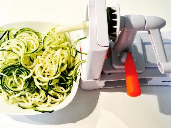Mit einem Spiralizer die Zucchini in Spaghetti schneiden. In ein Sieb legen, mit Salz bestreuen und ein paar Minuten ruhen lassen, damit das Salz das Wasser entzieht. Die Zucchini-Spaghetti auf ein Papiertuch oder Küchentuch legen und die überschüssige Feuchtigkeit abtupfen. In einer Pfanne ein Stück Butter schmelzen und die Spaghetti kurz anbraten. Nach Belieben eine Sauce hinzufügen – Bolognese oder eine Sahnesauce mit Garnelen passen hervorragend dazu.