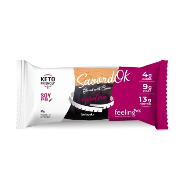 SavordOK orange flavored biscuit and coated with chocolate is a flavorful cookie (43g) without added sugar, with low carbohydrate content, and high protein content. One package contains less than 0.5g of sugar! Ideal for a quick sweet treat anywhere. Convenient packaging that can accompany us on the go, at work, school, or at home. The product is also suitable for diabetics. Available in various flavors. Low Carb product, contains gluten.