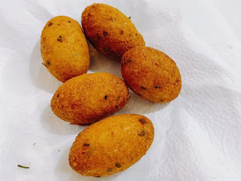 - Prepared croquettes can be rolled in potato fiber, placed on a baking sheet lined with parchment paper, and frozen. Once frozen, transfer them to a bag or container. Before frying, leave them at room temperature for about 45–60 minutes and fry as if freshly made.