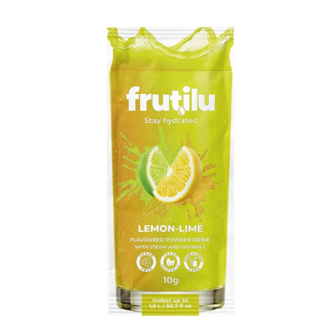 Frutilu instant napitek v prahu z okusom limone in limete. Brez sladkorja, s sladili, z dodanim C vitaminom, brez aspartama. Za pripravo do 4 litre napitka. Low Carb izdelek. Primerno tudi za diabetike.