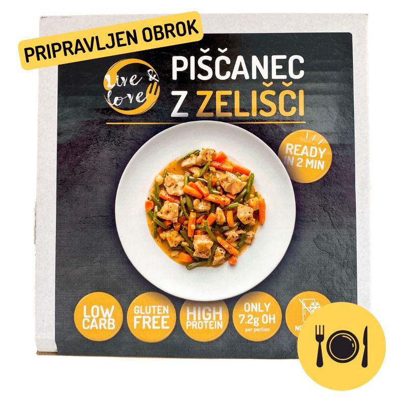 Sočni koščki piščanca v nežni zeliščni omaki (pehtran in timijan) s smetano ter z dodatkom stročjega fižola in korenčka. Vse skupaj sestavlja hiter beljakovinski low carb obrok – brez truda, brez kompromisov in z minimalno vsebnostjo ogljikovih hidratov.