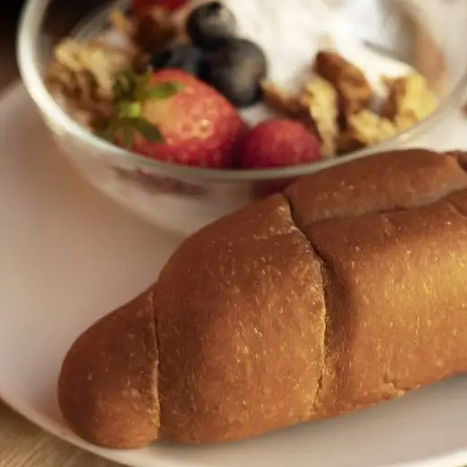 Nežen rogljiček brez polnila. Napolnimo ga lahko z namazi po želji ali pa uživamo v njegovem pristnem okusu. Brez dodanega sladkorja, z nizkim deležem ogljikovih hidratov in visokim deležem proteinov. Idealen prigrizek kjerkoli in kadarkoli. Primerno tudi za diabetike. Low carb izdelek, vsebuje gluten.
