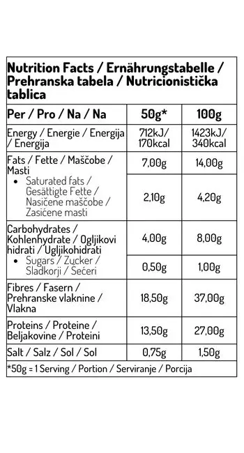 Tabela hranilnih vrednosti se nahaja med slikami izdelka.