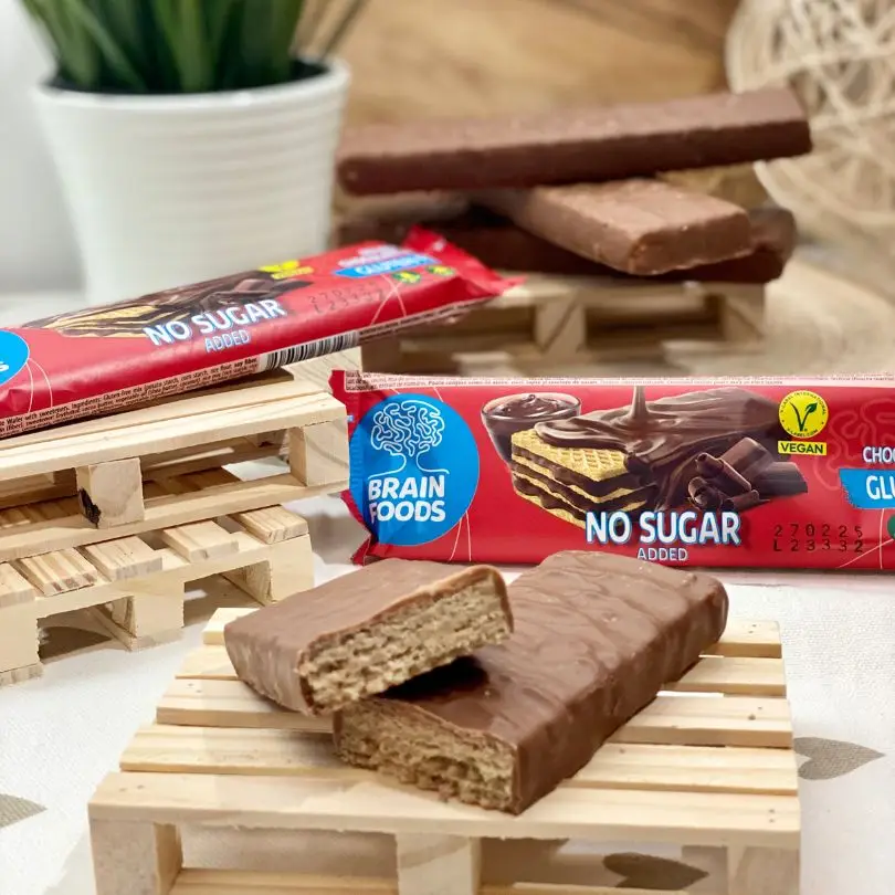 Brezglutenski vafelj, ki je hkrati tudi veganski, brez laktoze in brez dodanega sladkorja? Oblit s čokolado? Sliši se prelepo, da bi bilo res, ampak je!! Pa ne samo to, ne vsebuje tudi nobenih umetnih sladil, za sladek okus poskrbi naravno sladilo eritritol, kar je redkost pri tovrstnih produktih. Ima nizek delež ogljikovih hidratov ter visok delež prebiotičnih vlaknin (od 6-9 g – odvisno od okusa), ki poskrbijo za zdravo črevesno floro ter znižujejo glikemični indeks. Tvoj idealni prigrizek kjerkoli in kadarkoli! Na voljo v različnih slastnih okusih.