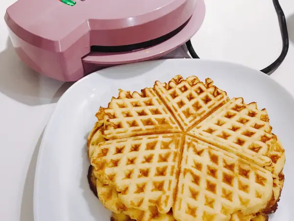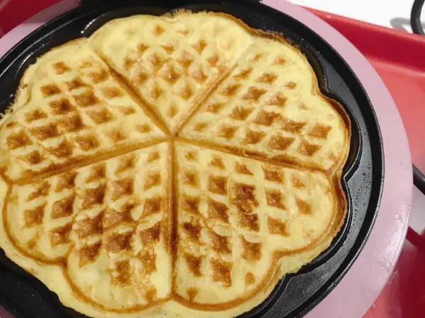 Pekač za vaflje namastimo in na sredino damo kupček mase ter spečemo.