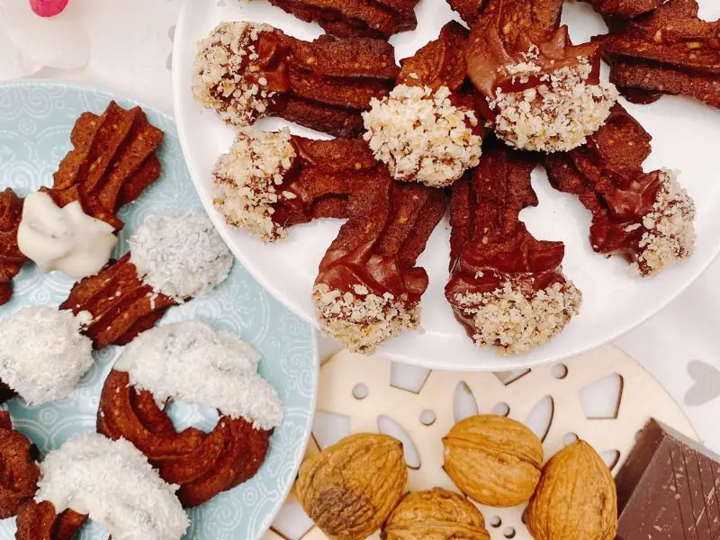 Ohlajene piškote lahko okrasimo s čokoladno glazuro in posujemo z mletimi lešniki, orehi, kokosom…