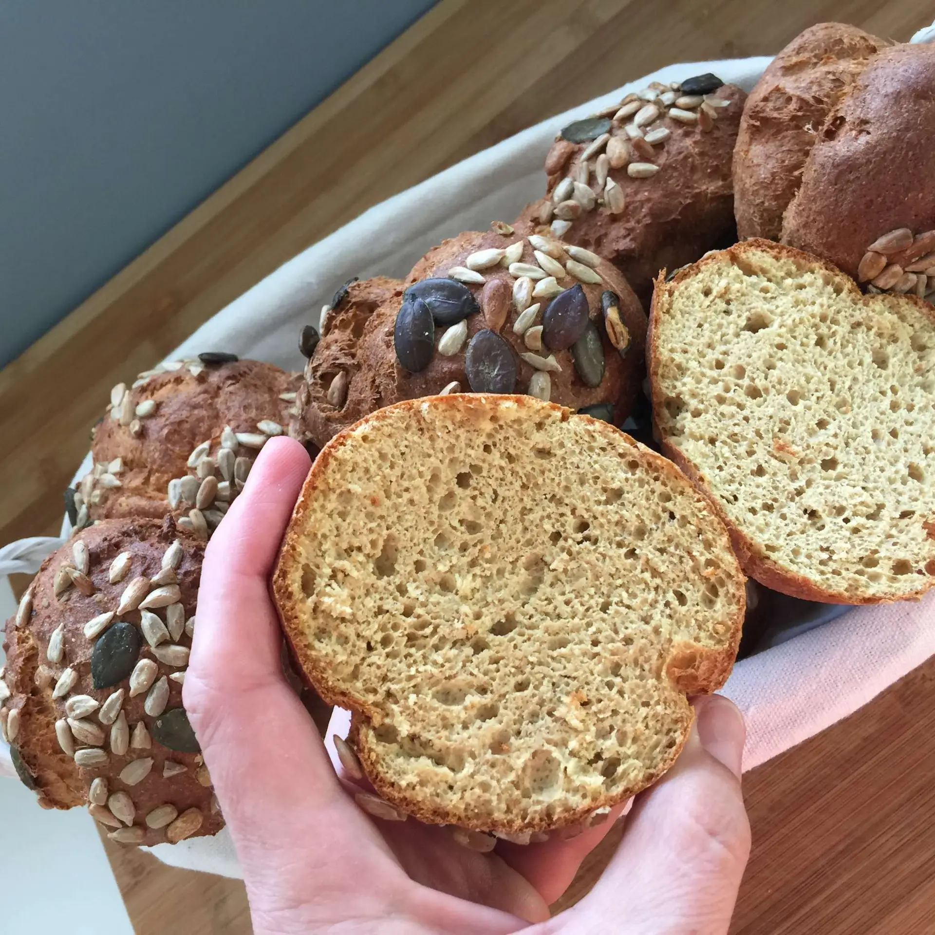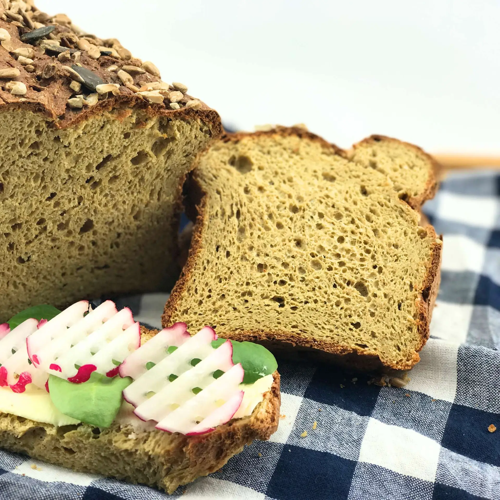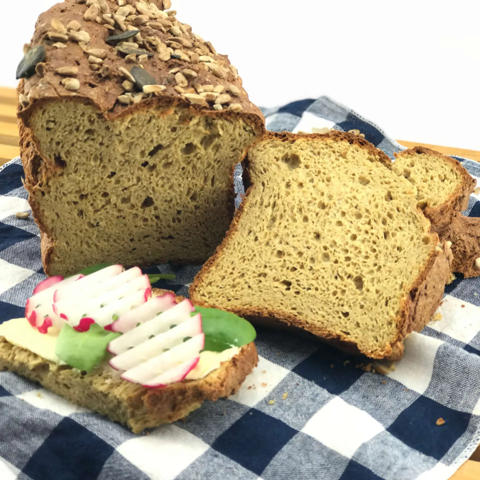 Kruh po spodnjem receptu nima okusa po mandljih ali marcipanu (kar se velikokrat zgodi, če uporabimo veliko mandljeve moke ali mlete mandlje), niti po kokosu. Zakaj? Ker ne vsebuje nobene od teh sestavin. Kruh pride mehek, se ne drobi, ni zbit in ni moker. Okus je zelo podoben rženemu ali ostalim polnozrnatim kruhom.