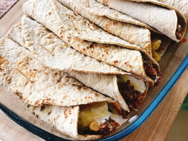 Tortilje morajo biti mehke, ne smejo se trgati in ne smejo počiti ko jih zavijamo. Zato jih ne smemo zapeči preveč. Okus imajo kot polnozrnate tortilje